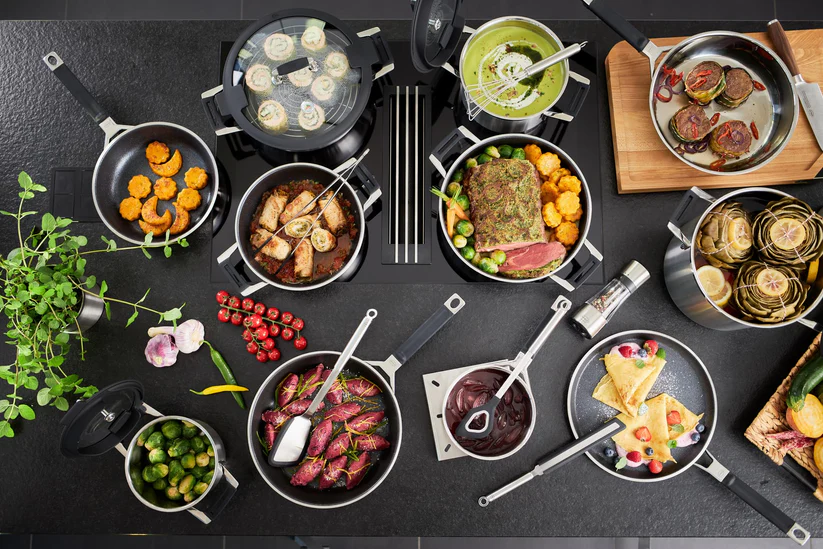 Die ergonomisch gestalteten Griffe mit Silikonmantel schützen vor starker Hitzeentwicklung und sorgen für ein sicheres Handling. Das Topfset ist spülmaschinengeeignet, backofentauglich bis 160 °C und für alle Herdarten geeignet, einschließlich Induktion, Gas, Elektro und Glaskeramik.